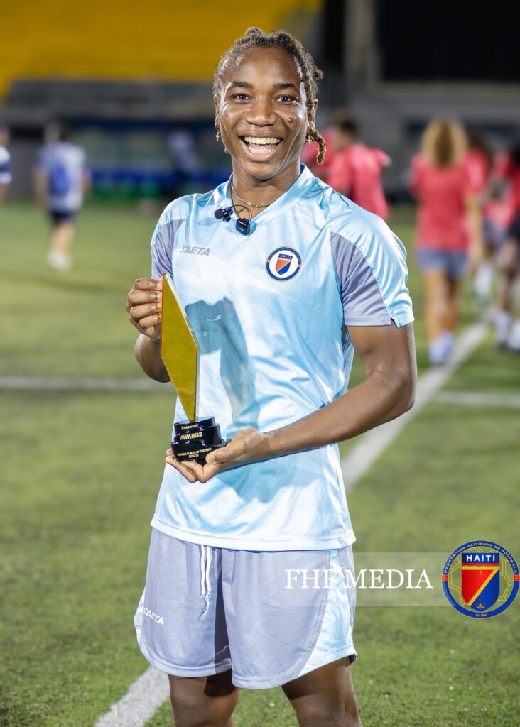 À la veille du premier match des éliminatoires de la Coupe du monde 2027 contre le Belize, les Grenadières étaient en pleine séance d’entraînement officielle lorsque les représentants de la CONCACAF ont fait le déplacement pour une occasion très spéciale : remettre le trophée de Meilleure Joueuse de l’Année à Melchie Daëlle Dumornay, dite Corventina. La cérémonie s’est déroulée hier soir au FFB Stadium dans une atmosphère chaleureuse et festive.
