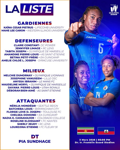 Plus qu’une simple liste, cette convocation marque le début d’un projet. Le message est clair : Haïti veut confirmer sa progression sur la scène internationale et continuer d’écrire son histoire dans le football féminin.